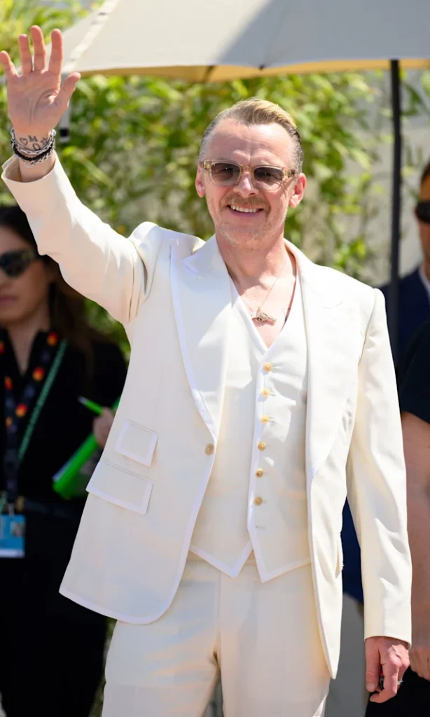 Conosciuto come Benji Dunn nella serie Mission Impossible, Simon sembrava felicissimo di essere in Francia. L’attore ha sfoggiato un elegante abito bianco mentre salutava i fan.