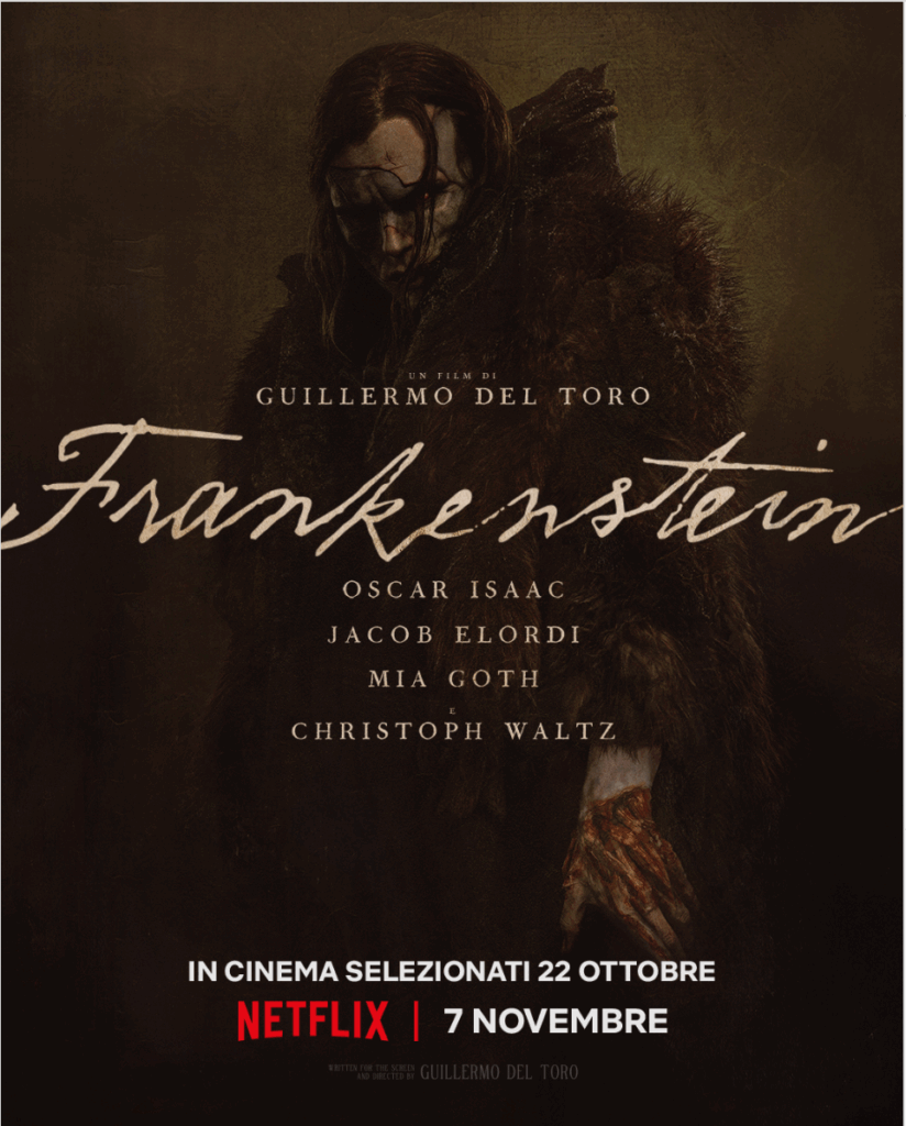 Presentato in concorso all’82ª edizione del Festival del Cinema di Venezia, Frankenstein di Guillermo del Toro è già entrato nel cuore degli appassionati come una delle opere più attese della stagione. Interpretato da Oscar Isaac, Jacob Elordi, Mia Goth e Christoph Waltz, il film sarà disponibile in cinema selezionati dal 22 ottobre e su Netflix dal 7 novembre. Dopo più di vent’anni di sogni e tentativi, Del Toro realizza finalmente il suo adattamento del romanzo immortale di Mary Shelley, restituendo nuova vita a uno dei miti fondanti dell’horror e della fantascienza.